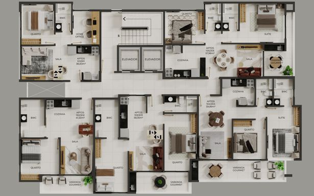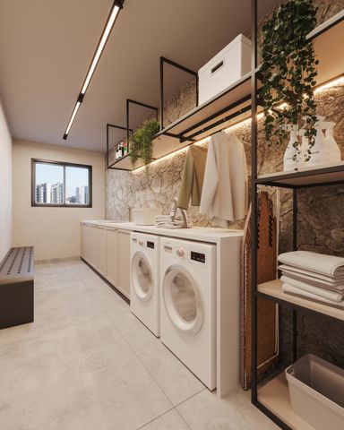 São 40 unidade: 16 unidades de 01 quarto e 26 unidades de 02 quartos, todas com vagas de garagem privativa. Àrea de Lazer na cobertura inclui piscina adulto e infantil, Sky Lounge, Sky Bar, academia, restaurante, lavanderia compartilhada e solário.