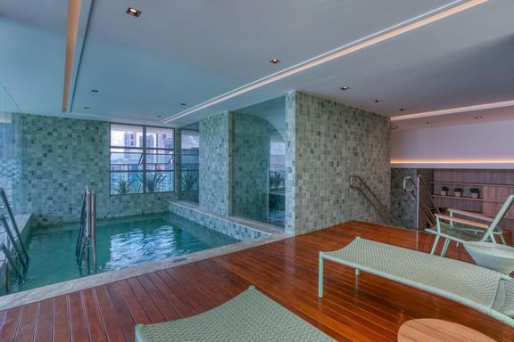 Cobertura panorâmica com área de lazer completa: Fitness e Deck Esporte, Piscina com deck molhado e raia de 20m, SPA com sauna úmida, seca e Piscina Aquecida, Pérgola/Gazebo e Lounge Rebaixado.