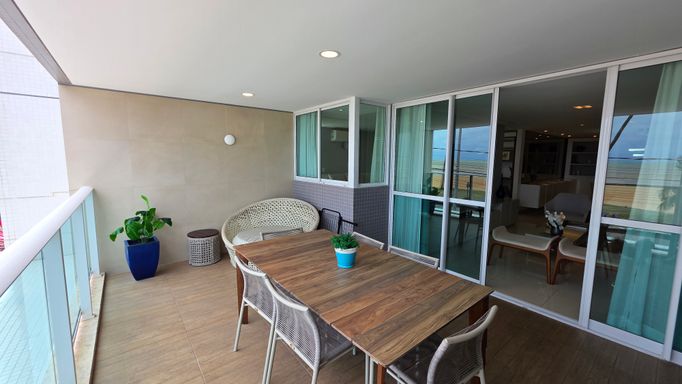 VIVI IMÓVEIS (CRECI 0718J) Vende um maravilhoso apartamento de 4 quartos a beira-mar da praia do Cabo Branco, TODO MOBILIADO, em João Pessoa - Paraíba.