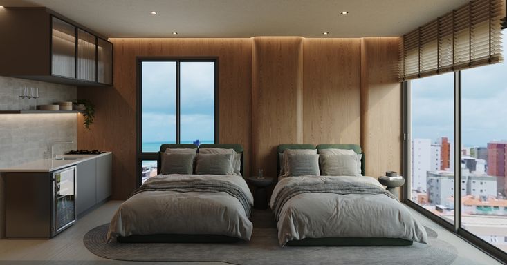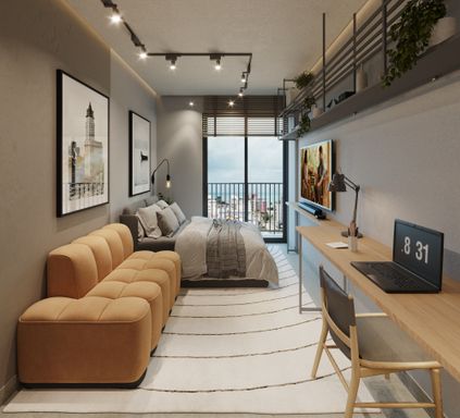 Flats que variam de 18 a 28m², cada detalhe foi planejado para oferecer uma experiência excepcional, integrando funcionalidade, conforto e tecnologia.