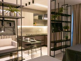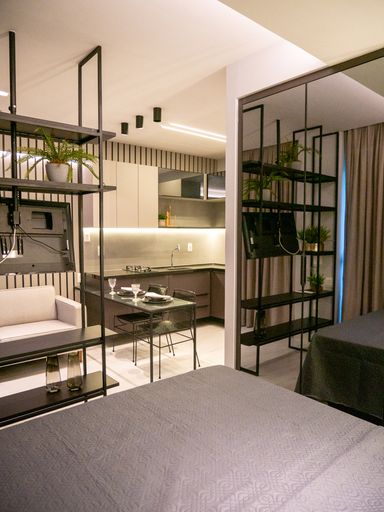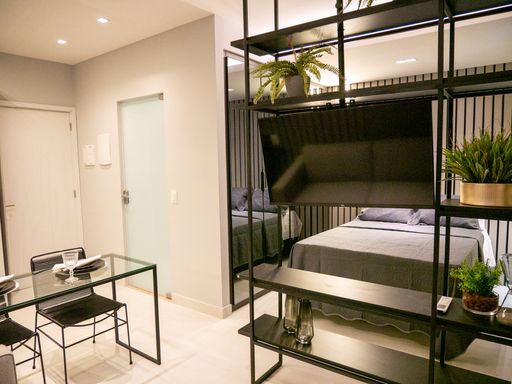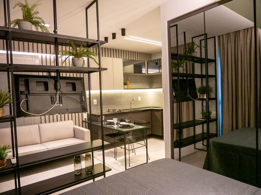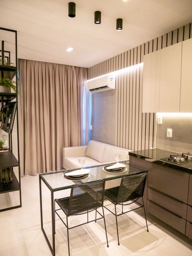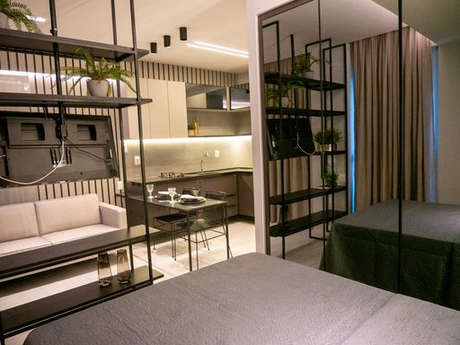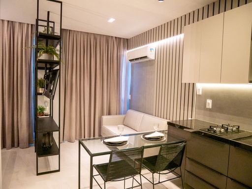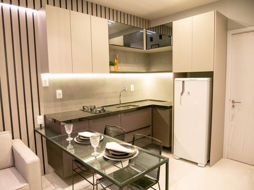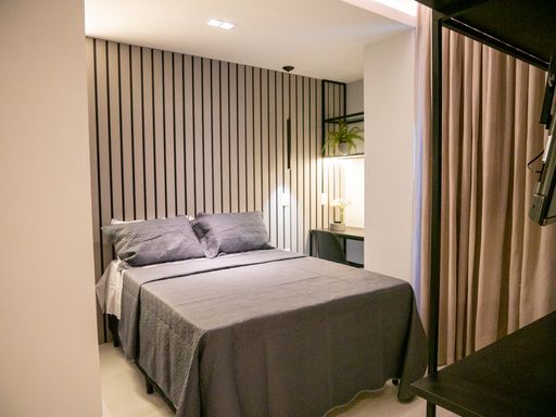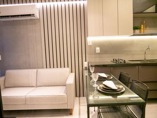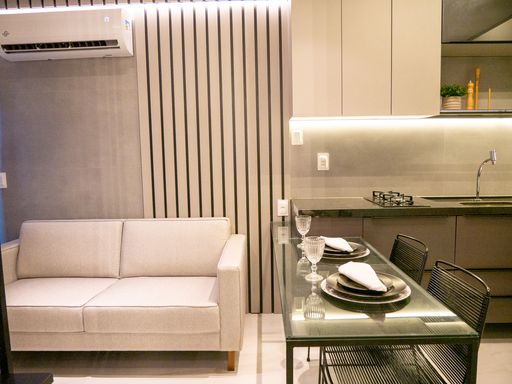 A VIVI IMÓVEIS (CRECI 0718J) Vende apartamento estilo flat MOBILIADO com localização estratégica e pensado para quem precisa de comodidades que facilitam muito a rotina.